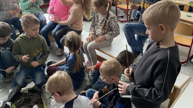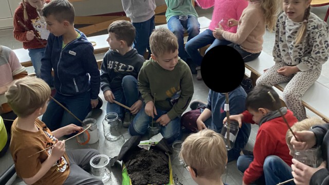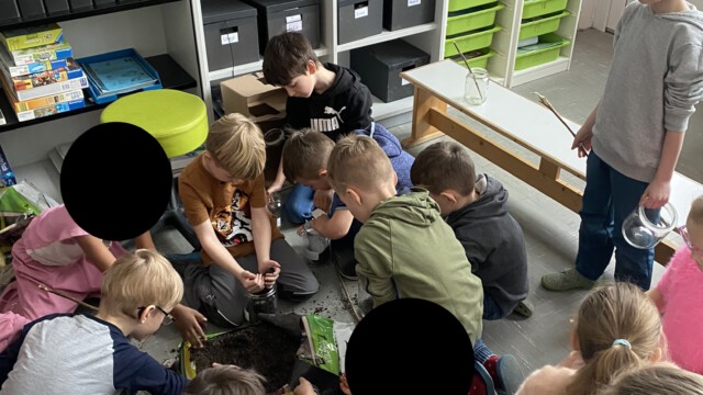 Der Frühling hält Einzug-wir pflanzen Feuerbohnen.