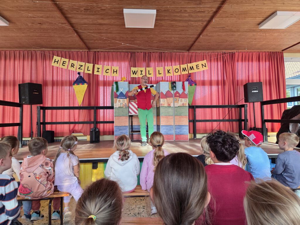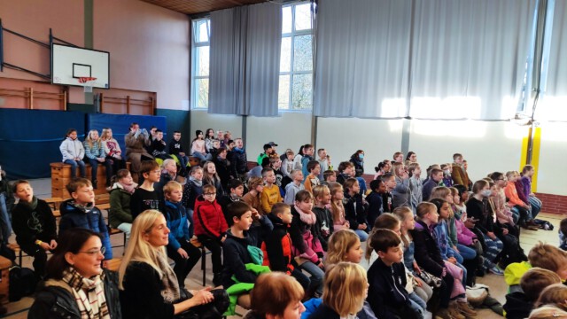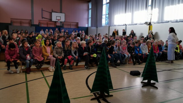 Am 22. November brachte ein kleines Ensemble des Sauerlandtheaters weihnachtliche Stimmung in unsere Turnhalle. Das Stück „Petterson und Findus feiern Weihnachten“ wurde gespielt und wir hatten eine tolle Zeit mit Unterhaltung, Musik und leuchtenden Kinderaugen.