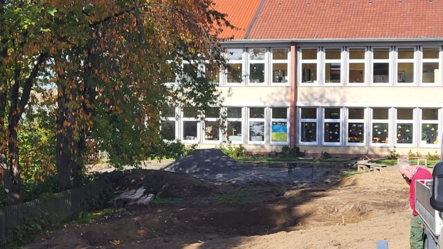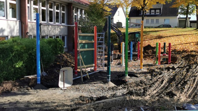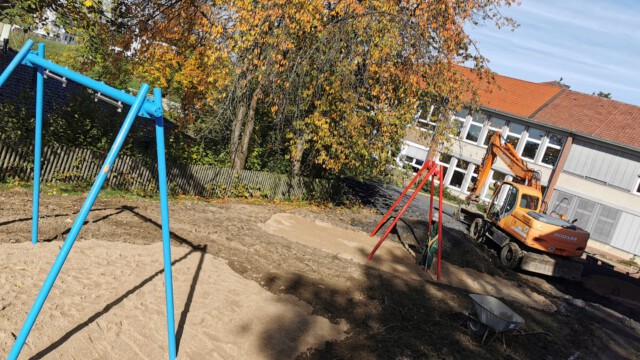 Endlich ist es soweit! Nach langer Planungen und einem aussichtsreichen Plan haben die Bauarbeiten für den neuen Schulgarten in den Herbstferien begonnen. Auch wenn zeitweise der Baulärm kurzzeitig vom Unterricht ablenkt, kann man schnell Fortschritte erkennen. So hängen schon Nestschaukel und Schaukel und auch weitere Spielflächen sind erkennbar. Wir freuen uns schon sehr auf das Endergebnis, damit alle Kinder unserer Schule die neuen Spielmöglichkeiten nutzen können.