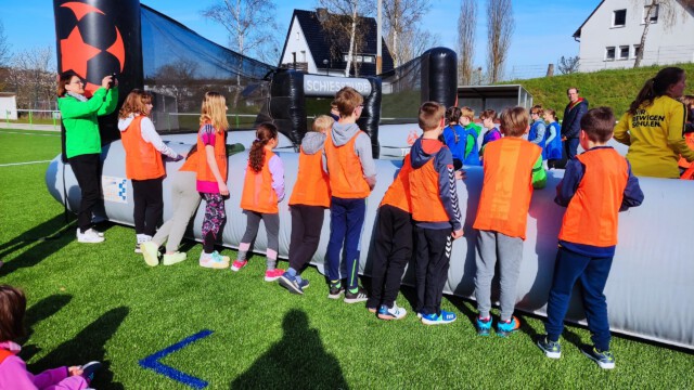 Am 27.9. veranstaltete Thorsten Stein mit verschiedenen Vereinen einen Fußballtag nur für Mädchen. Im Rahmen der Arnsberger Fußballwoche (hier geht es zum Bericht vom WDR) trainierten die Mädchen von beiden Standorten Geschicklichkeit, Schnelligkeit und den Kontakt mit dem Ball auf dem Sportplatz von Niedereimer. Dabei konnten auch die Skeptikerinnen von der Spielfreude anstecken lassen und hatten einen tollen Vormittag. Die Jungs verbrachten den Morgen am Schreppenberg und konnten sich an verschiedenen Sportstationen und natürlich auch beim Fußballspiel austoben. Fleißige Mütter haben für alle Kinder Obst und Gemüse besorgt und geschnitten, sodass ein gesunder Snack zur Verfügung stand. Hier sind ein paar Impressionen, mehr Bilder finden Sie auf der Klassenseite Ihres Kindes.
