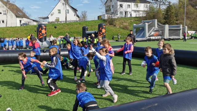 Bei bestem Wetter haben wir mit der Firma Trixxitt einen tollen und mega aktiven Vormittag verbringen dürfen. Auf aufgeblasenen Spielfeldern ging es in den Hindernisparcours, an die Basketballkörbe und und in den Menschenkicker. Am Ende wurde ein Fairnispreis vergeben, den die Klasse 1 aus Niedereimer stolz entgegen nehmen konnte.