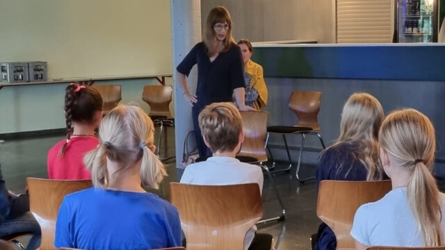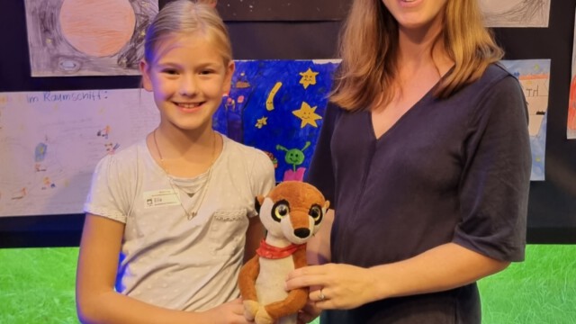Dr. Insa Thiele- Eich fliegt ins Weltall und nimmt auch die Kinder mit. Sie veranstaltete einen Malwettbewerb und so waren alle Kinder der Klassen 3 und 4 unserer Schule aufgerufen, im Rahmen des Kunstunterrichts Bilder zu malen, wie sie sich ein Leben im Weltraum so vorstellen. Elea P. und Ella B. haben sich besonders angestrengt und konnten die Jury überzeugen. Zur Buchpreisverleihung kam natürlich auch die Astronautin selbst und beantwortete viele Fragen der jungen Künstler und Künstlerinnen.