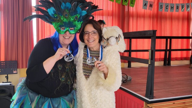 Endlich war es auch an unserer Schule Zeit für Karneval. Die Klassen und Flure wurden geschmückt, Kostüme genäht, gebastelt und verziert. Pünktlich zu Schulbeginn versammelten sich alle Kinder und Lehrerinnen in den Klassen. Erst wurden die Kostüme präsentiert, dann wurde gespielt und das reichhaltige Buffet geplündert. Nach der Pause kam die KLAKAG zu Besuch und unsere SchülerInnen konnten die tänzerischen Leistungen bestaunen. Der Höhepunkt war an beiden Standorten sicherlich die Kostümprämierung. Hier ein paar Ausschnitte aus unserem bunten Vormittag. Sicherlich kommen in den folgenden Tagen noch Beiträge der einzelnen Klassen hinzu.