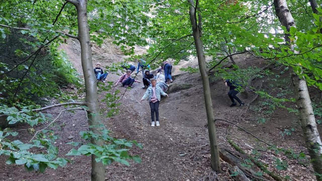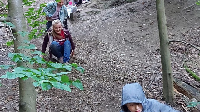 Im September haben wir an den Waldjugendspielen teilgenommen. Dabei mussten wir verschiedene Aufgaben rund um das Thema „Wald“ lösen. Kurz vor dem Heimweg haben wir dann die Waldrutsche entdeckt, die uns besonders gut gefallen hat.