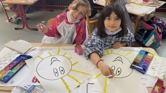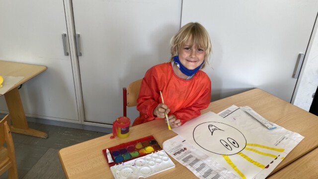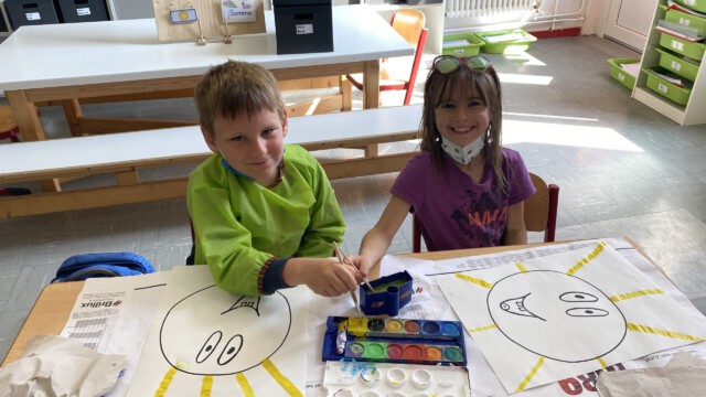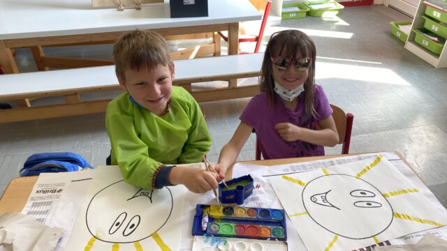 Mit Wasserfarben können wir tolle Kunstwerke erstellen. Hier malen wir eine Sonne mit bunten Sonnenstrahlen.