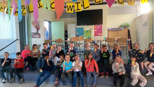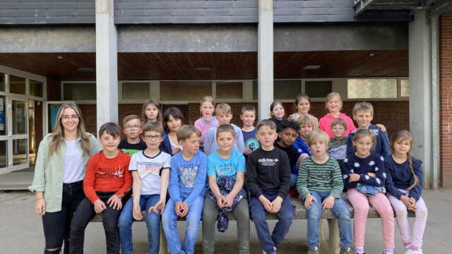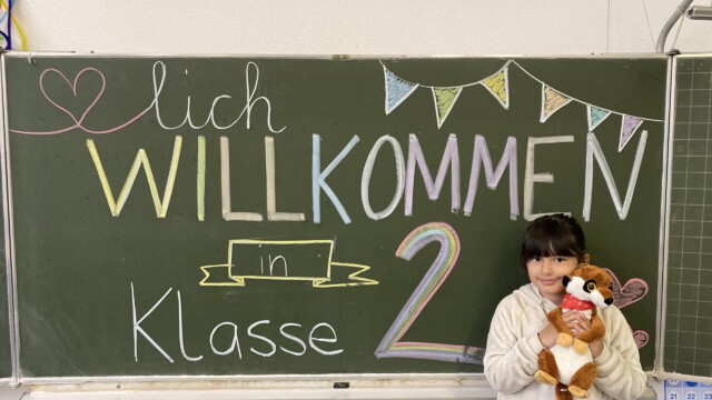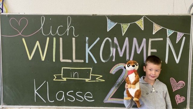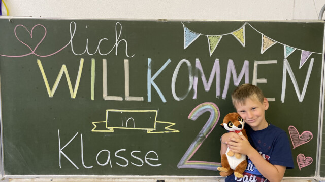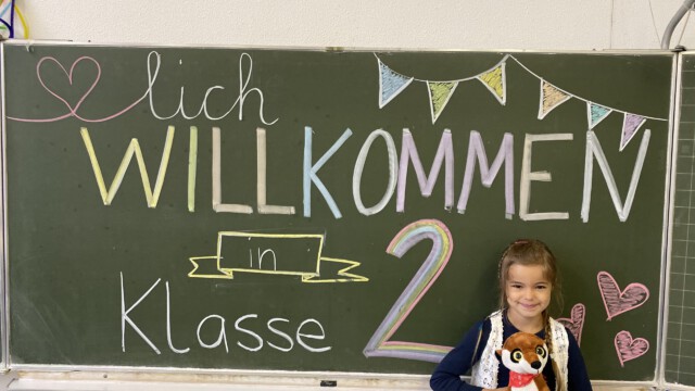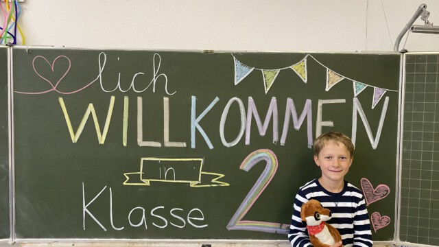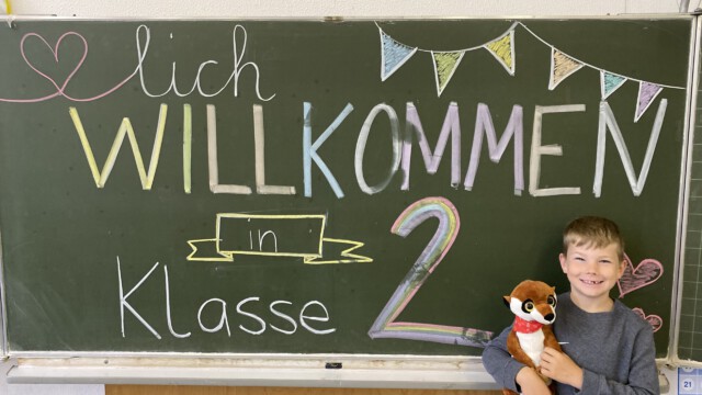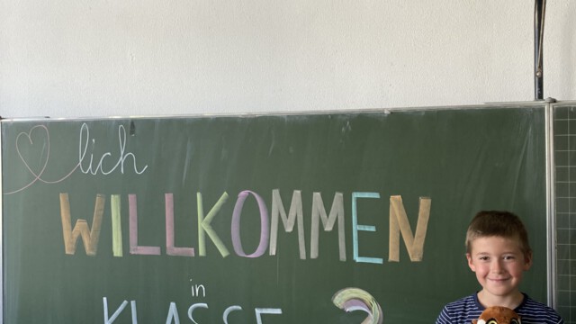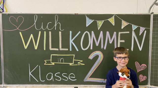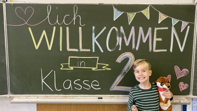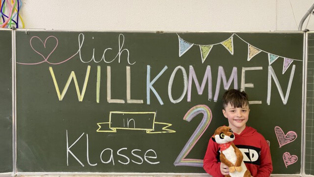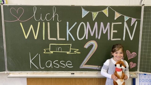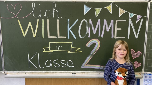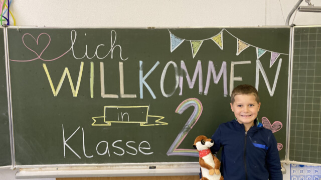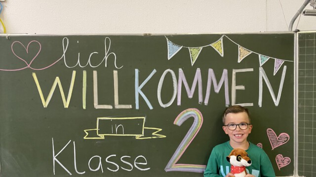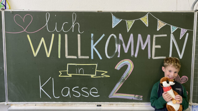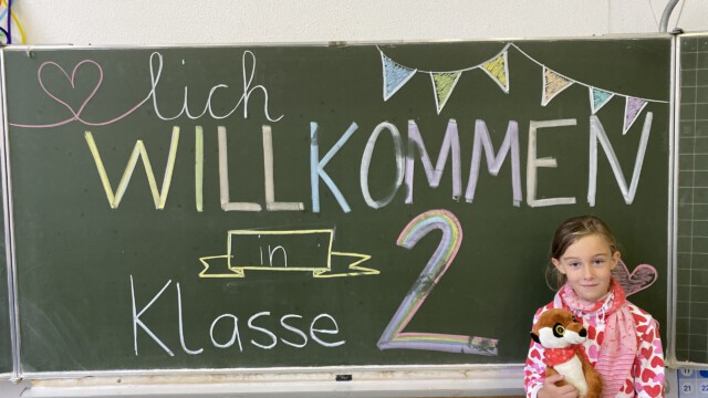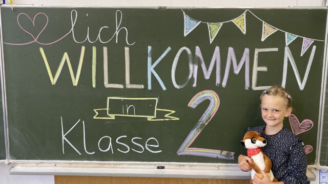 An unserem ersten Schultag im zweiten Schuljahr hat Frau Kremer ein Erinnerungsfoto von uns gemacht.