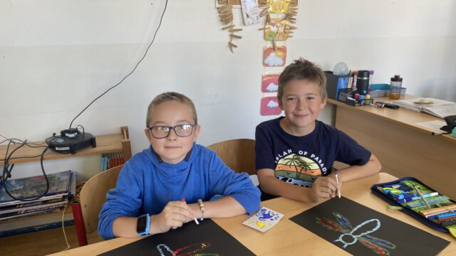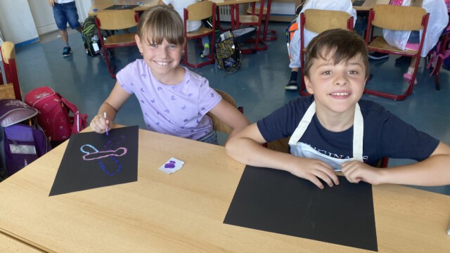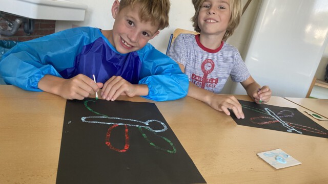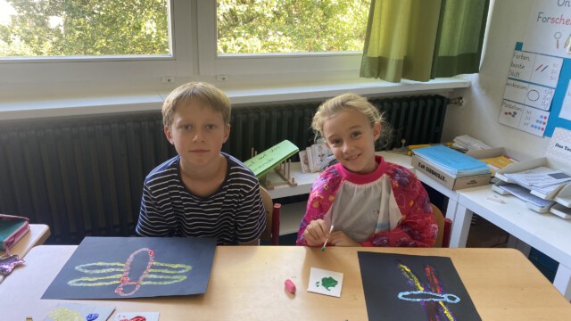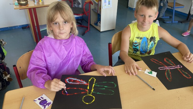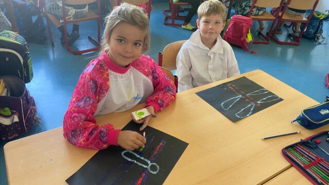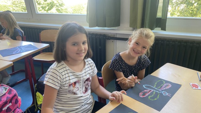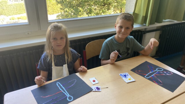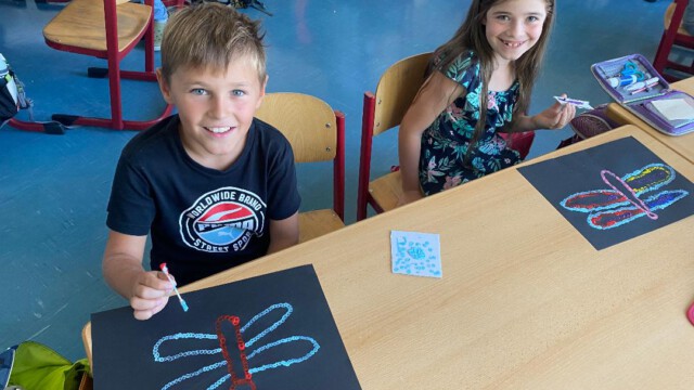 Zu Beginn des 3. Schuljahres lernten wir im Kunstunterricht die Technik „Dot-Painting“. Wir gestalteten eindrucksvolle Libellenbilder.