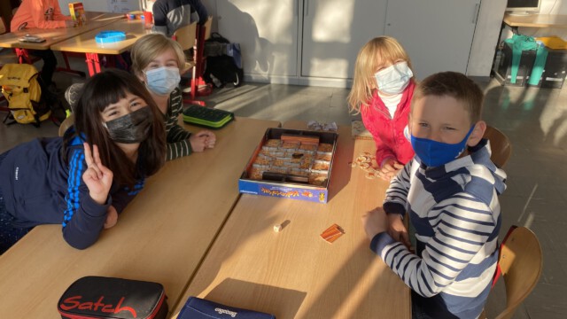 An einem Freitag durften wir Gesellschaftsspiele/Spiele mit in die Schule bringen. In kleinen Gruppen haben wir einige Spiele gespielt und getestet. Das war toll!